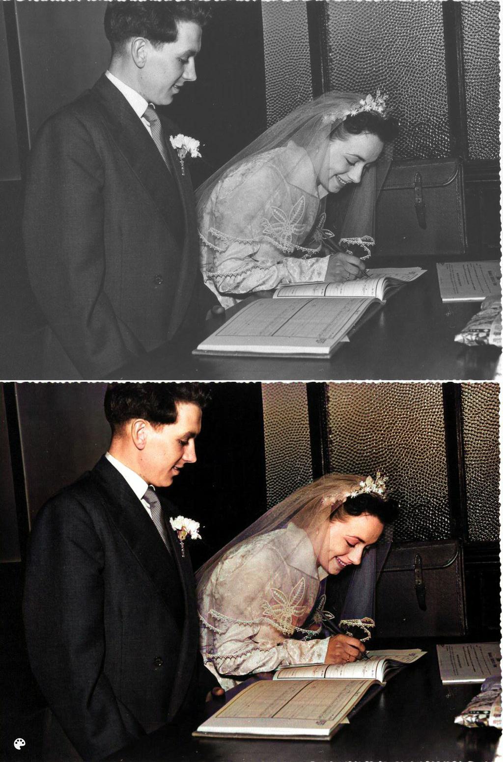 Digitizing your photos allows you to move them around and reconfigure them in new ways. Aside from curating your own customized albums or photo books to print, you can even recreate a photo album using the colorized and enhanced versions of the original photos.