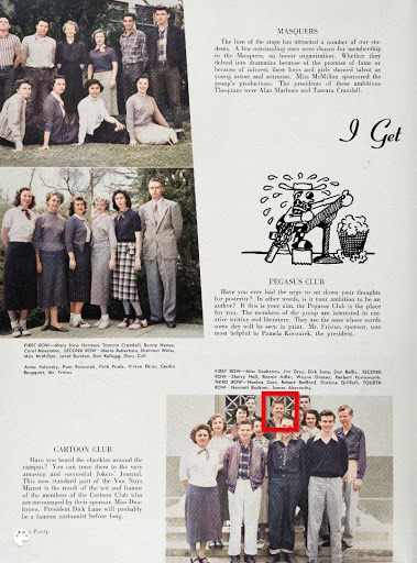 Robert Redford was named one of the 100 most influential people in the world and “Godfather of Indie Film” by Time Magazine in 2014. The actor and filmmaker was born in Santa Monica, California and went to high school in Van Nuys. He described himself as a “bad” student, seeking inspiration in the arts and in sports instead of his studies. We found him grinning widely as a member of the Cartoon Club at his school in 1952.
