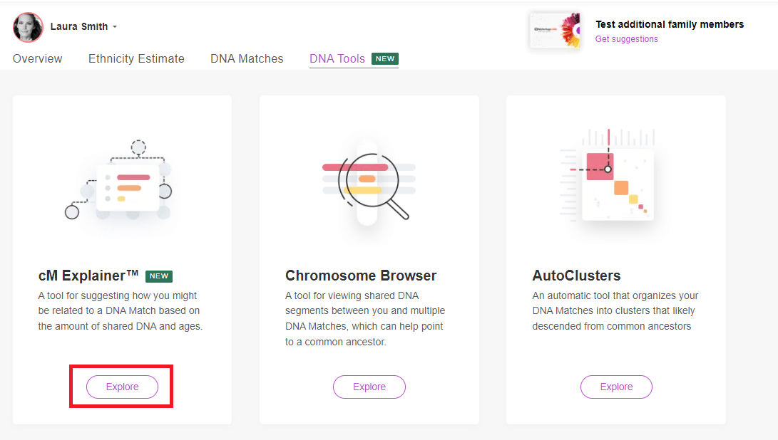 To get started, visit myheritage.com/cm. You can also access the tool by selecting “DNA Tools” from the DNA menu on the main navigation bar, or clicking the “DNA Tools” tab from any page of your DNA results.