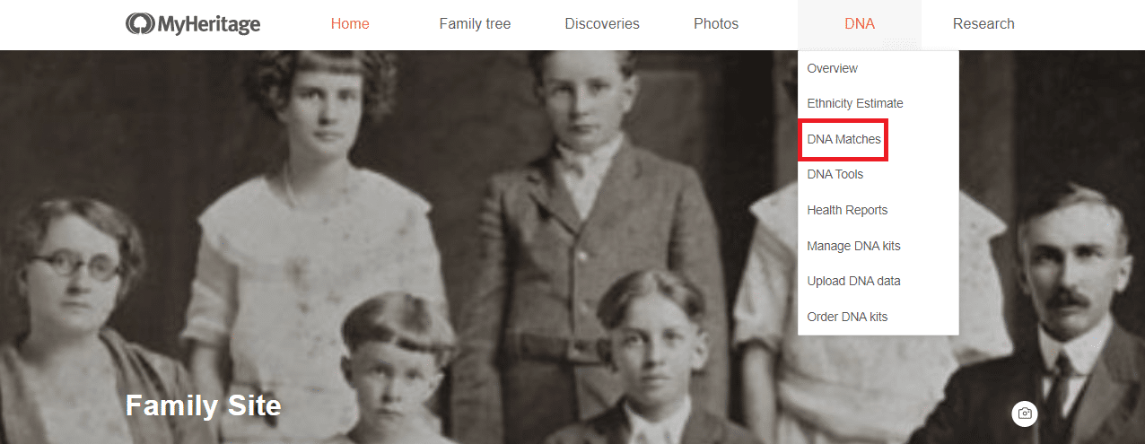 For users who have DNA results on MyHeritage, select “DNA Matches” from the DNA tab on the main navigation bar.