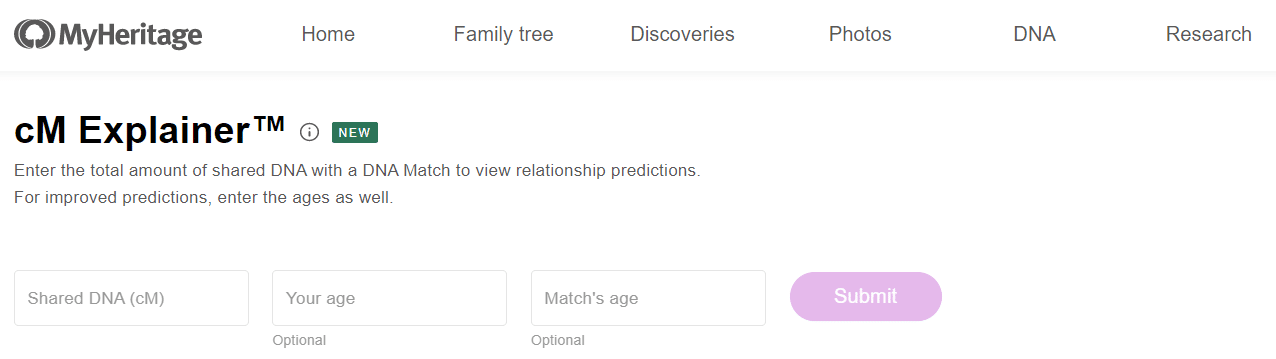 DNA Matches are characterized by the amount of DNA shared between two individuals, measured using a unit of genetic distance called centimorgans (cM). cM Explainer is unique in the way it uses both the centimorgan value as well as the ages of the two individuals (if known) to fine-tune its predictions, making MyHeritage the only major genealogy company to offer relationship prediction at this level of granularity and accuracy.