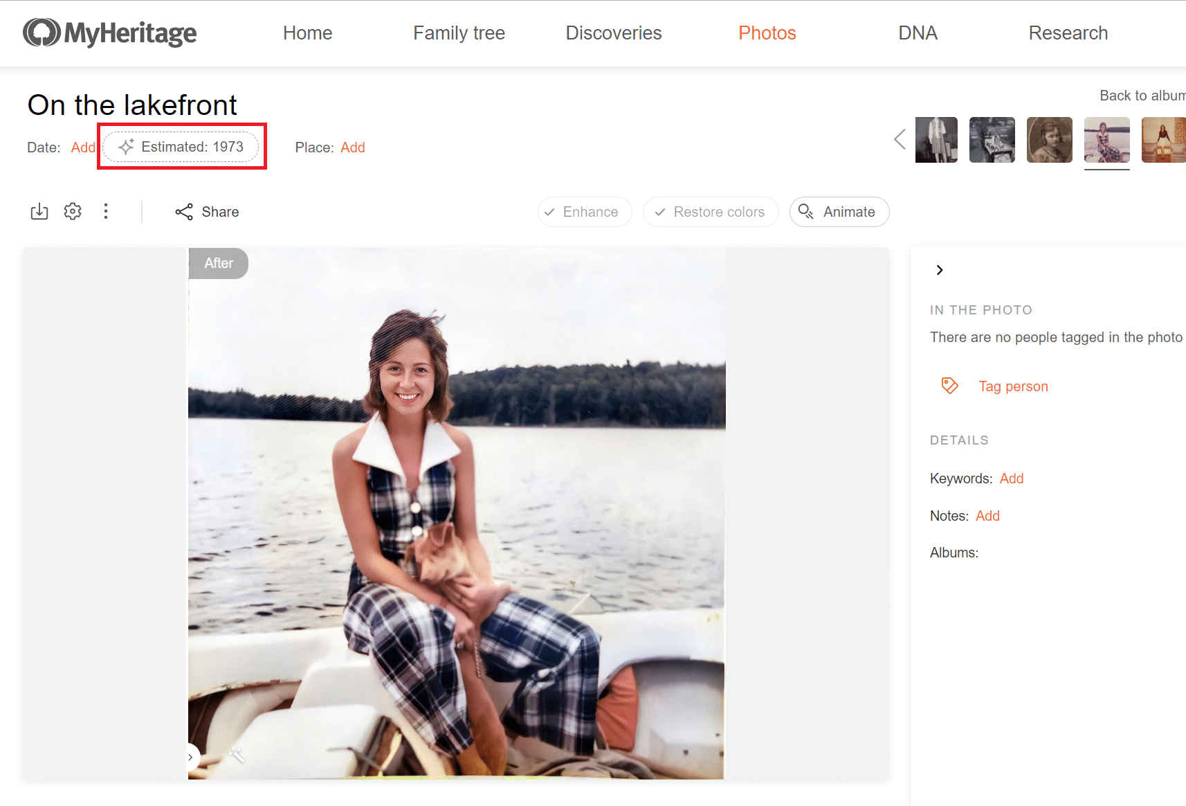 Since 2020, MyHeritage is the undisputed industry leader in developing innovative features for family photos, and as always, there’s much more to come. We invite you to upload your photos to MyHeritage and take advantage of PhotoDater today!