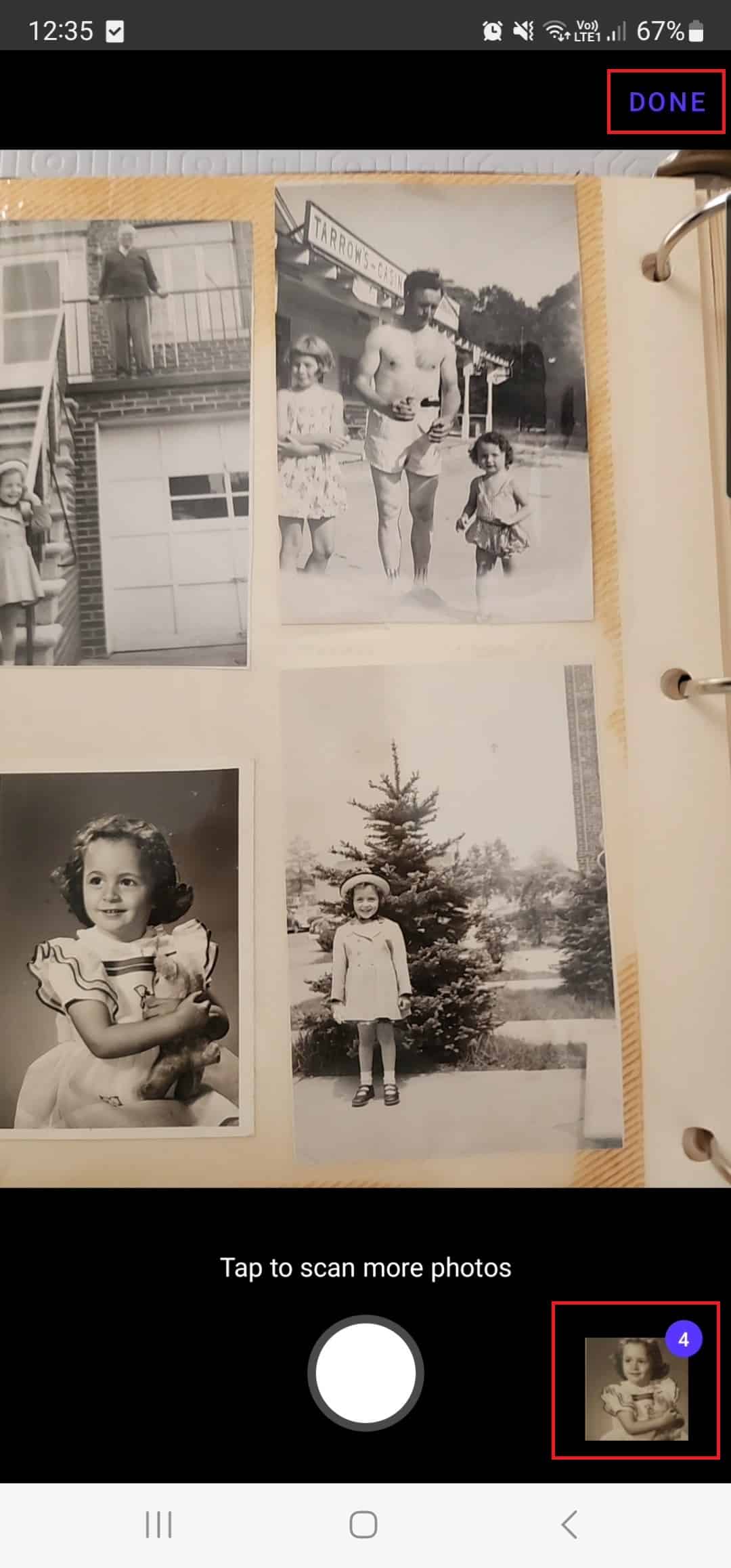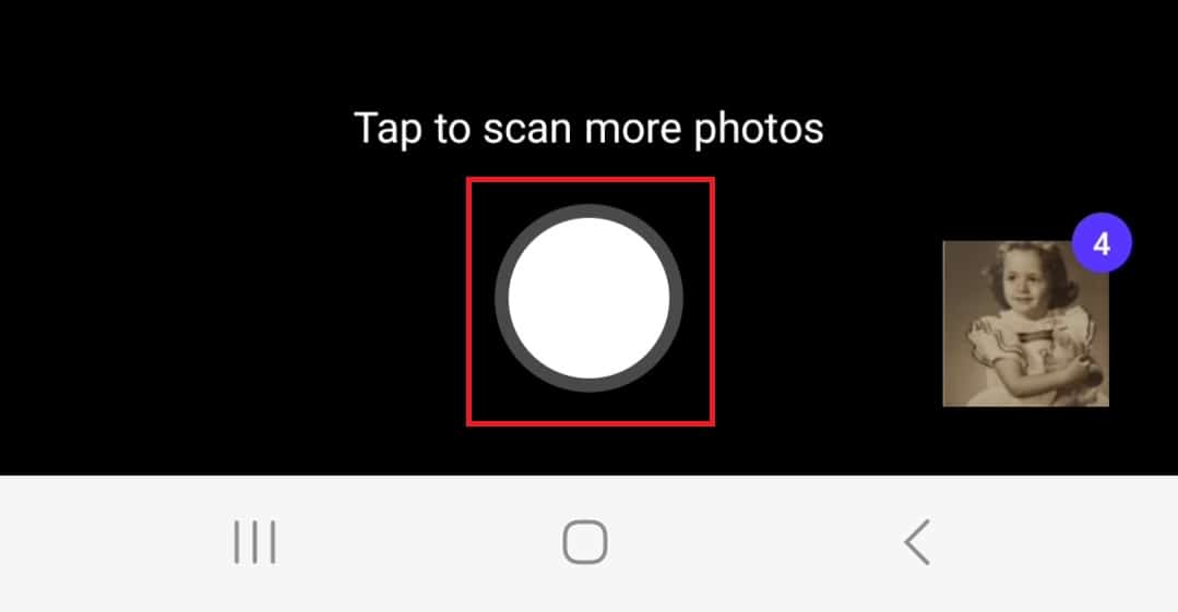 Tap the round button at the bottom center of the screen to continue scanning more album pages or photos.